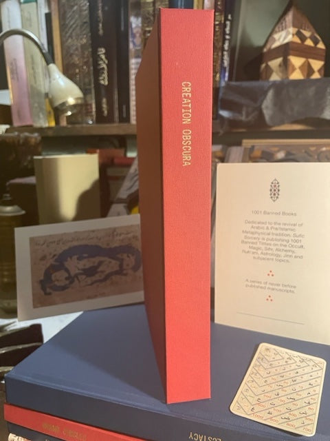 Red Linen wrap Hardcover with gold spine embossing, colored and fully illustrated 430 pages rare Arabic manuscript: عجائب المخلوقات or a better suited translation of this tittle 'Creation Obscura'.