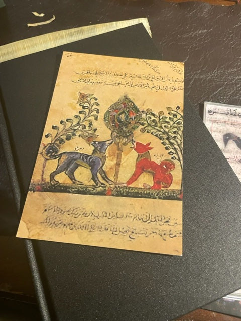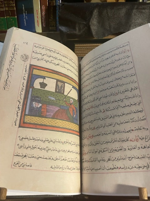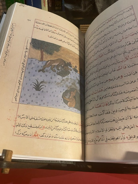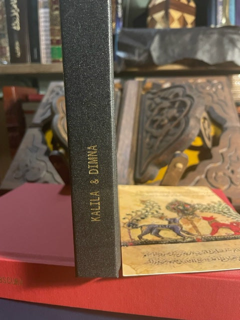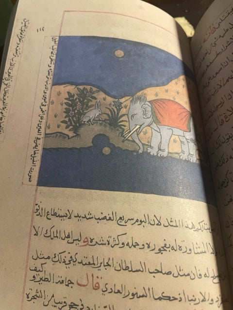 Black Linen wrap Hardcover with gold spine embossing, colored and fully illustrated 322 pages rare Arabic manuscript: Kalila & Dimna كليلة ودمنة